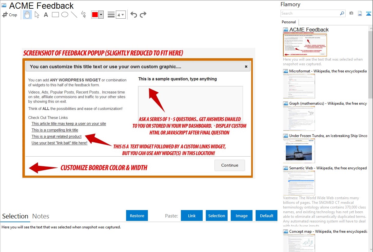 Flamory provides advanced bookmarking for ACME Feedback. It captures screen, selection, text on the page and other context. You can find this bookmark later using search by page content or looking through thumbnail list.