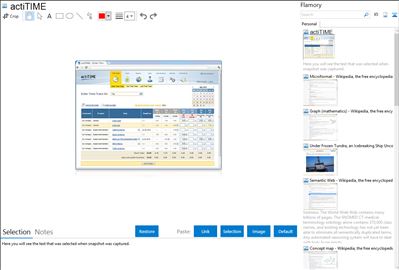 Flamory helps you capture and store screenshots from actiTIME by pressing a single hotkey. It will be saved to a history, so you can continue doing your tasks without interruptions. Later, you can edit the screenshot: crop, resize, add labels and highlights. After that, you can paste the screenshot into any other document or e-mail message.
