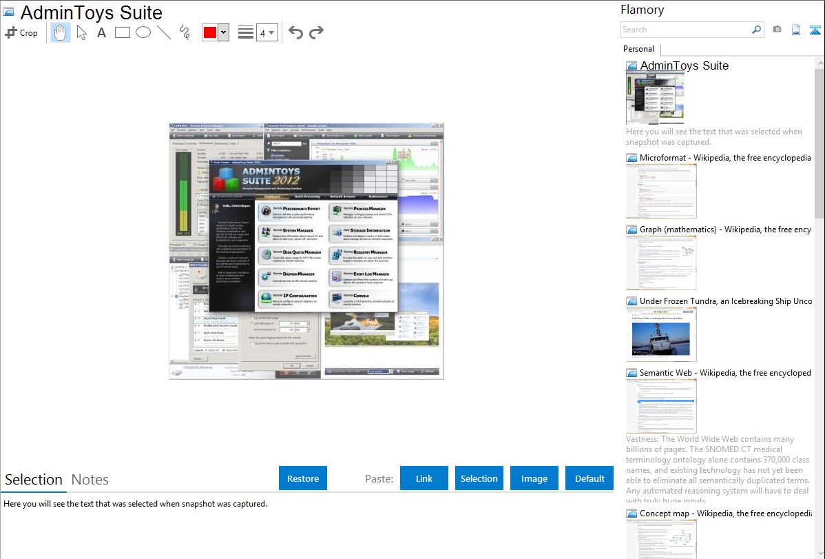 Flamory helps you capture and store screenshots from AdminToys Suite by pressing a single hotkey. It will be saved to a history, so you can continue doing your tasks without interruptions. Later, you can edit the screenshot: crop, resize, add labels and highlights. After that, you can paste the screenshot into any other document or e-mail message.