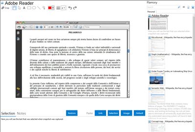 Flamory helps you capture and store screenshots from Adobe Reader by pressing a single hotkey. It will be saved to a history, so you can continue doing your tasks without interruptions. Later, you can edit the screenshot: crop, resize, add labels and highlights. After that, you can paste the screenshot into any other document or e-mail message.