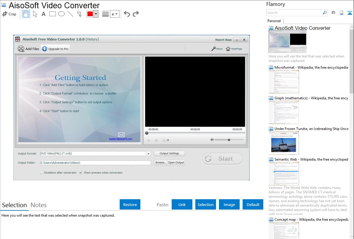 Flamory provides advanced bookmarking for AisoSoft Video Converter. It captures screen, selection, text of the document and other context. You can find this bookmark later using search by document content or looking through thumbnail list.