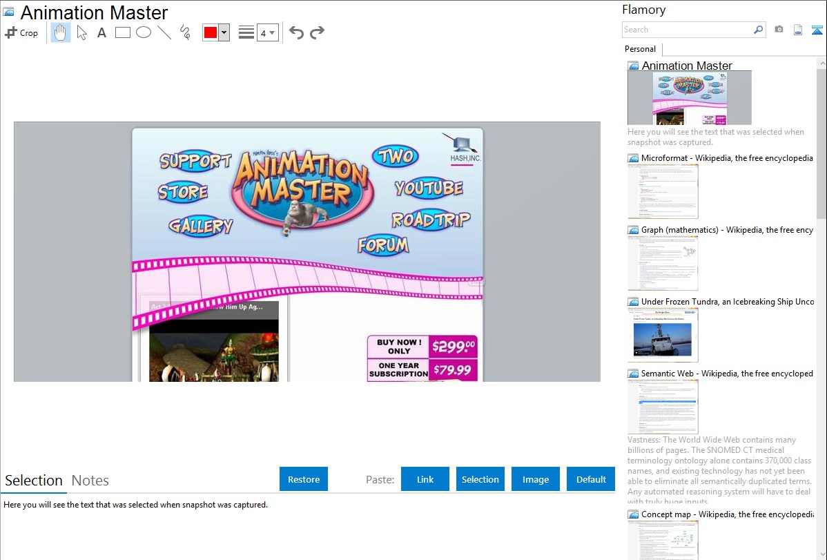 Flamory helps you capture and store screenshots from Animation Master by pressing a single hotkey. It will be saved to a history, so you can continue doing your tasks without interruptions. Later, you can edit the screenshot: crop, resize, add labels and highlights. After that, you can paste the screenshot into any other document or e-mail message.