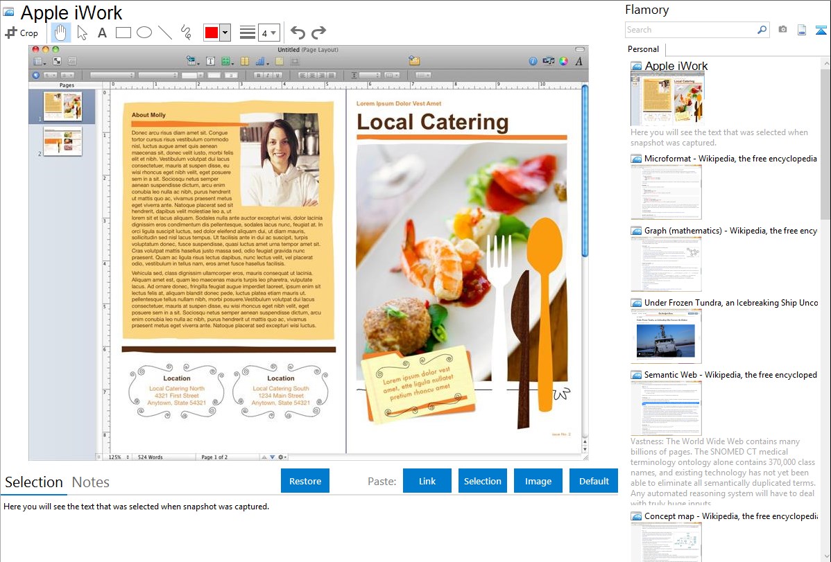 Flamory helps you capture and store screenshots from Apple iWork by pressing a single hotkey. It will be saved to a history, so you can continue doing your tasks without interruptions. Later, you can edit the screenshot: crop, resize, add labels and highlights. After that, you can paste the screenshot into any other document or e-mail message.