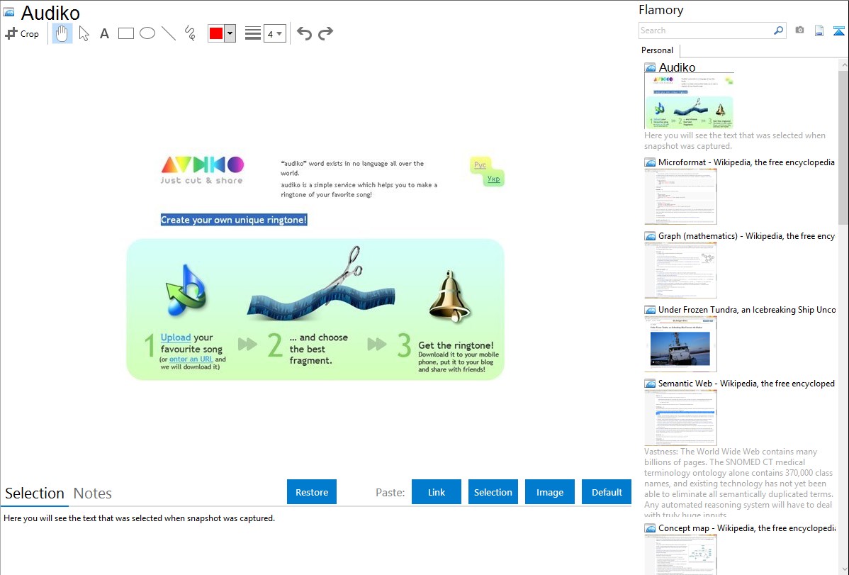 Flamory helps you capture and store screenshots from Audiko by pressing a single hotkey. It will be saved to a history, so you can continue doing your tasks without interruptions. Later, you can edit the screenshot: crop, resize, add labels and highlights. After that, you can paste the screenshot into any other document or e-mail message.