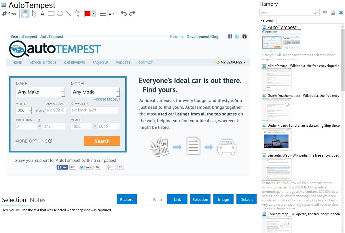 Flamory helps you capture and store screenshots from AutoTempest by pressing a single hotkey. It will be saved to a history, so you can continue doing your tasks without interruptions. Later, you can edit the screenshot: crop, resize, add labels and highlights. After that, you can paste the screenshot into any other document or e-mail message.