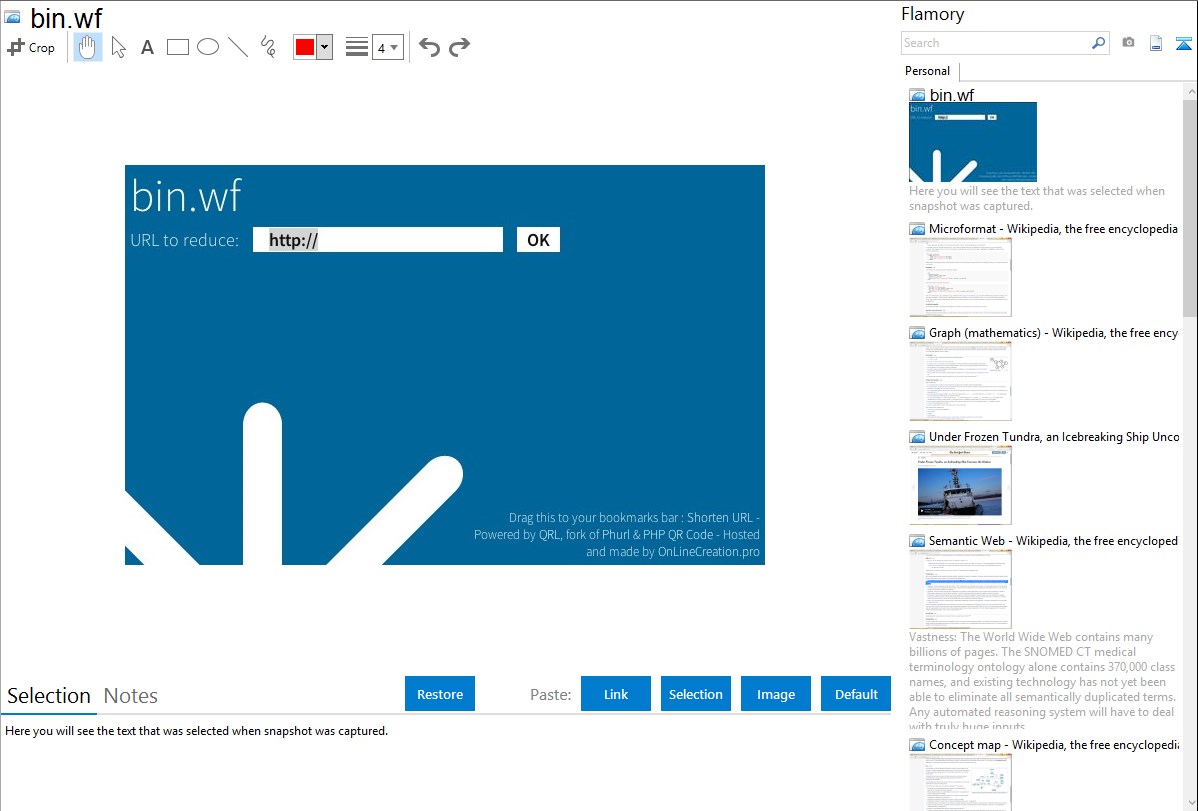 Flamory helps you capture and store screenshots from bin.wf by pressing a single hotkey. It will be saved to a history, so you can continue doing your tasks without interruptions. Later, you can edit the screenshot: crop, resize, add labels and highlights. After that, you can paste the screenshot into any other document or e-mail message.