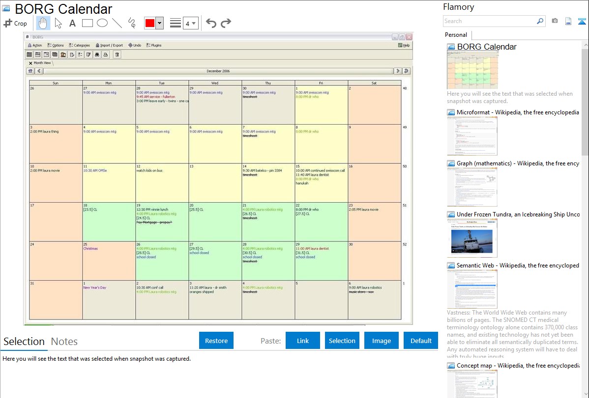 Flamory helps you capture and store screenshots from BORG Calendar by pressing a single hotkey. It will be saved to a history, so you can continue doing your tasks without interruptions. Later, you can edit the screenshot: crop, resize, add labels and highlights. After that, you can paste the screenshot into any other document or e-mail message.
