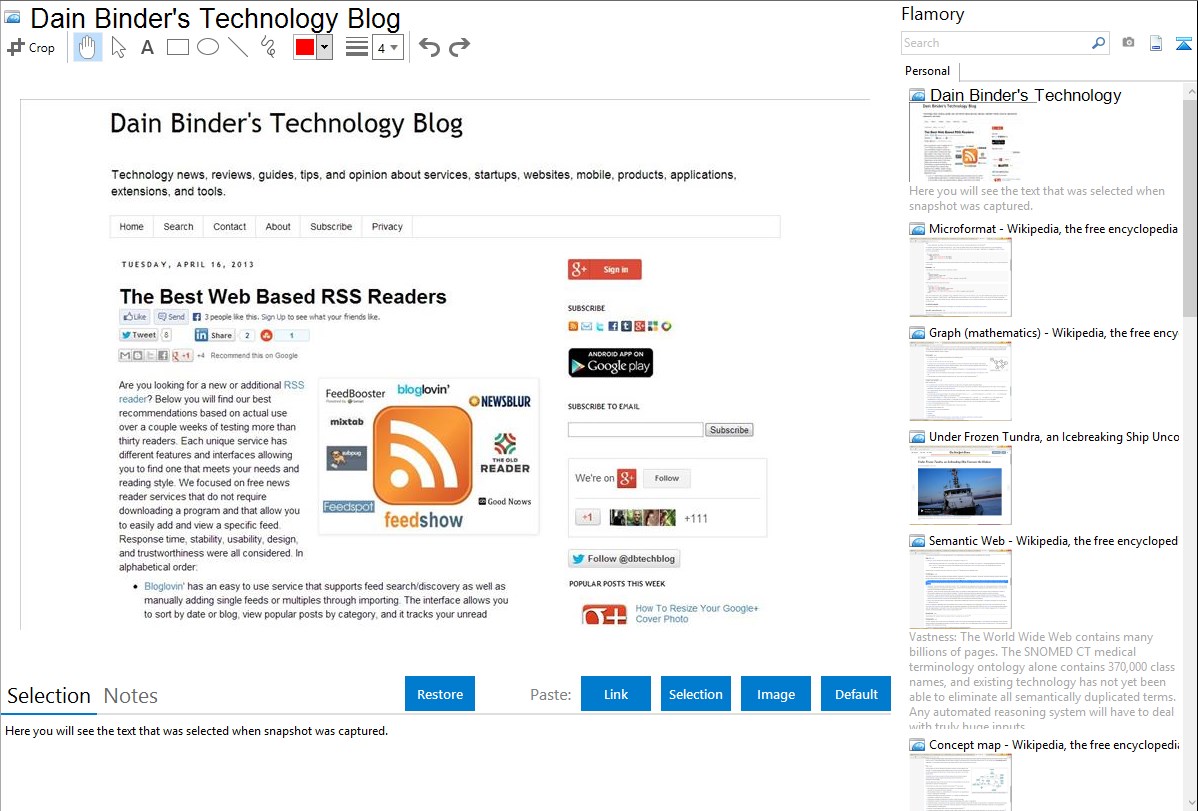 Flamory helps you capture and store screenshots from Dain Binder's Technology Blog by pressing a single hotkey. It will be saved to a history, so you can continue doing your tasks without interruptions. Later, you can edit the screenshot: crop, resize, add labels and highlights. After that, you can paste the screenshot into any other document or e-mail message.