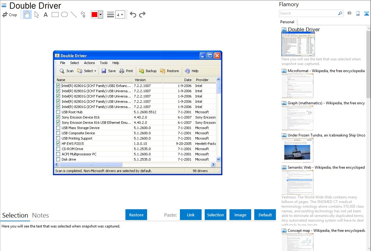 Flamory helps you capture and store screenshots from Double Driver by pressing a single hotkey. It will be saved to a history, so you can continue doing your tasks without interruptions. Later, you can edit the screenshot: crop, resize, add labels and highlights. After that, you can paste the screenshot into any other document or e-mail message.