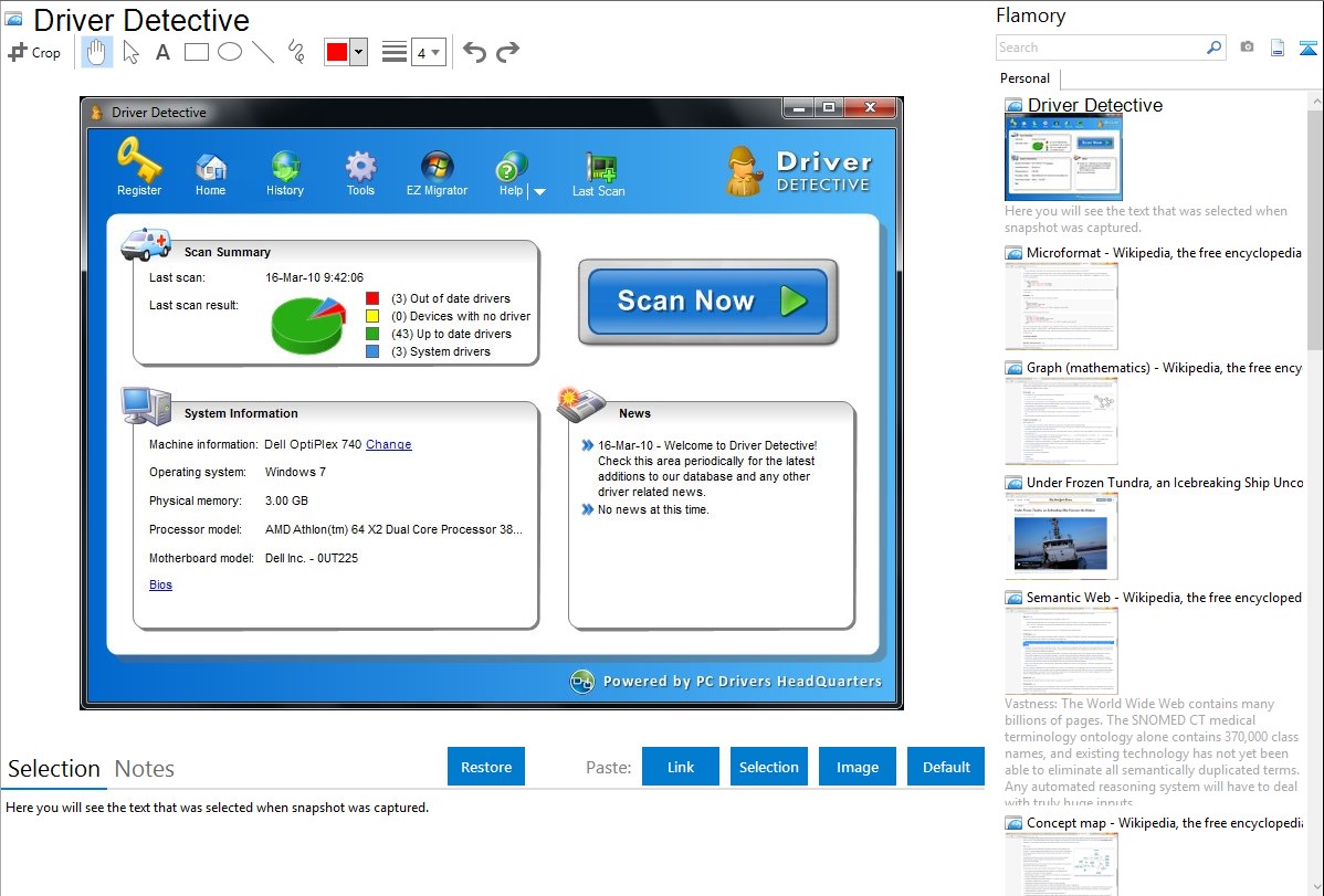 Flamory helps you capture and store screenshots from Driver Detective by pressing a single hotkey. It will be saved to a history, so you can continue doing your tasks without interruptions. Later, you can edit the screenshot: crop, resize, add labels and highlights. After that, you can paste the screenshot into any other document or e-mail message.