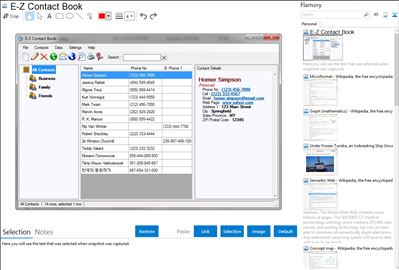 Flamory helps you capture and store screenshots from E-Z Contact Book by pressing a single hotkey. It will be saved to a history, so you can continue doing your tasks without interruptions. Later, you can edit the screenshot: crop, resize, add labels and highlights. After that, you can paste the screenshot into any other document or e-mail message.