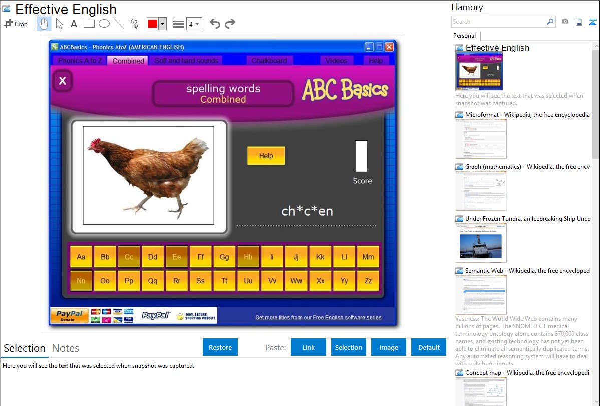 Flamory helps you capture and store screenshots from Effective English by pressing a single hotkey. It will be saved to a history, so you can continue doing your tasks without interruptions. Later, you can edit the screenshot: crop, resize, add labels and highlights. After that, you can paste the screenshot into any other document or e-mail message.