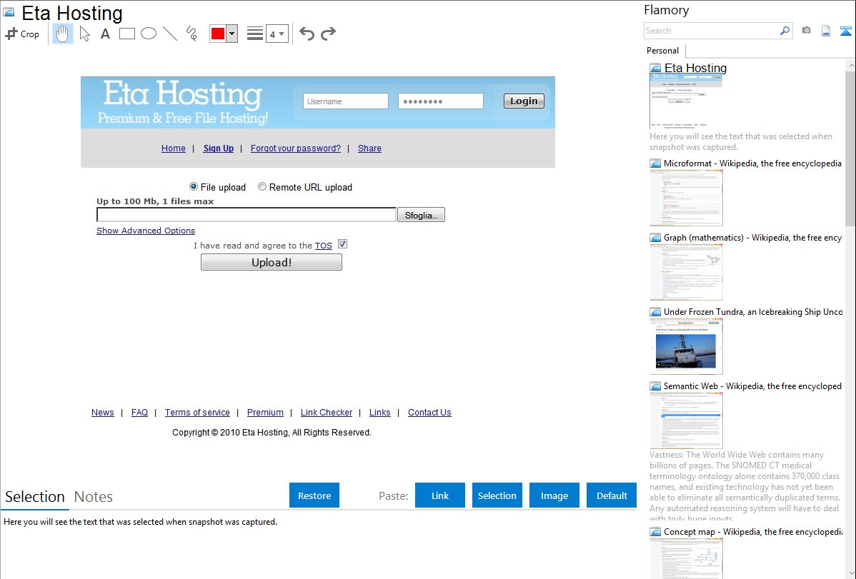 Flamory helps you capture and store screenshots from Eta Hosting by pressing a single hotkey. It will be saved to a history, so you can continue doing your tasks without interruptions. Later, you can edit the screenshot: crop, resize, add labels and highlights. After that, you can paste the screenshot into any other document or e-mail message.