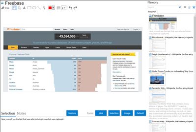 Flamory helps you capture and store screenshots from Freebase by pressing a single hotkey. It will be saved to a history, so you can continue doing your tasks without interruptions. Later, you can edit the screenshot: crop, resize, add labels and highlights. After that, you can paste the screenshot into any other document or e-mail message.