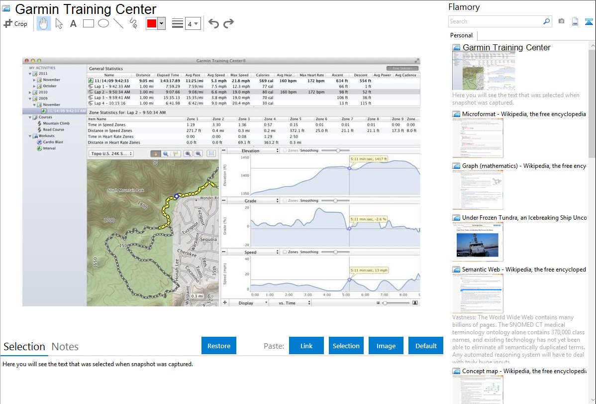 Flamory helps you capture and store screenshots from Garmin Training Center by pressing a single hotkey. It will be saved to a history, so you can continue doing your tasks without interruptions. Later, you can edit the screenshot: crop, resize, add labels and highlights. After that, you can paste the screenshot into any other document or e-mail message.