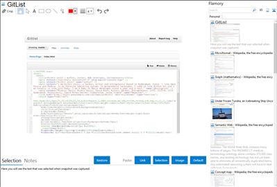 Flamory helps you capture and store screenshots from GitList by pressing a single hotkey. It will be saved to a history, so you can continue doing your tasks without interruptions. Later, you can edit the screenshot: crop, resize, add labels and highlights. After that, you can paste the screenshot into any other document or e-mail message.