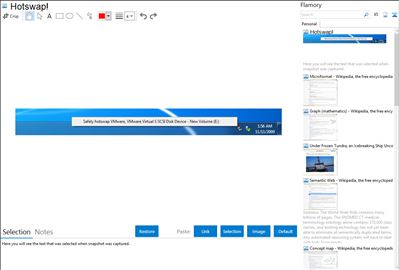 Flamory helps you capture and store screenshots from Hotswap! by pressing a single hotkey. It will be saved to a history, so you can continue doing your tasks without interruptions. Later, you can edit the screenshot: crop, resize, add labels and highlights. After that, you can paste the screenshot into any other document or e-mail message.