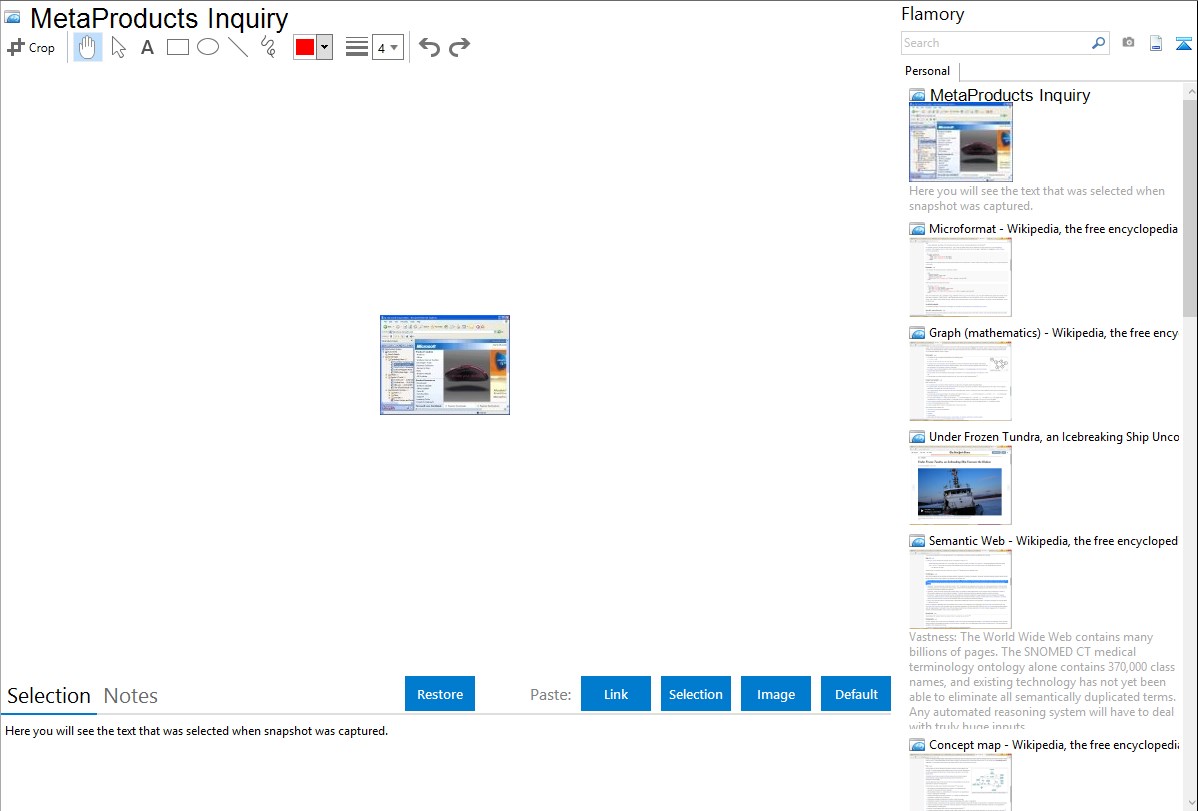 MetaProducts Inquiry helps you to collect, organize and view the information you find on the Internet. It is fully integrated with Microsoft Internet Explorer and also available as a standalone application.