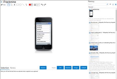 Flamory helps you capture and store screenshots from iTrackmine by pressing a single hotkey. It will be saved to a history, so you can continue doing your tasks without interruptions. Later, you can edit the screenshot: crop, resize, add labels and highlights. After that, you can paste the screenshot into any other document or e-mail message.
