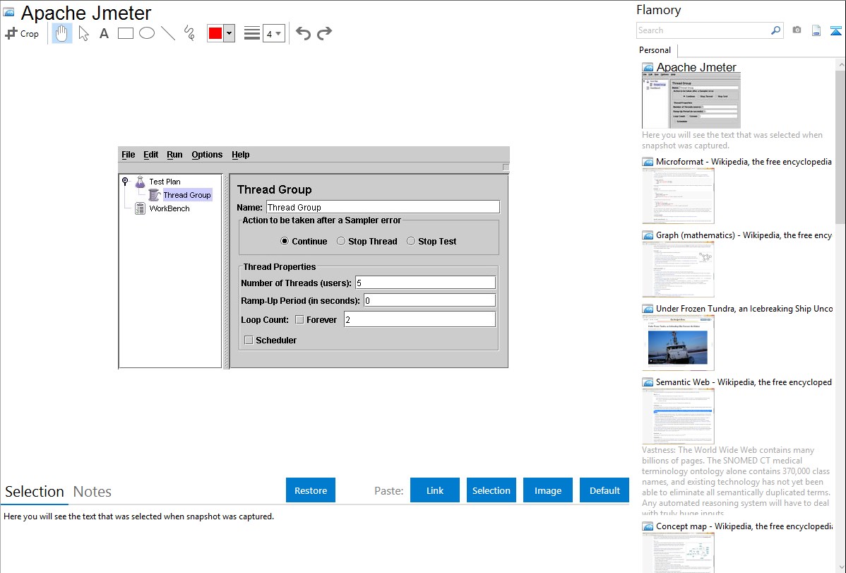 Flamory helps you capture and store screenshots from Apache Jmeter by pressing a single hotkey. It will be saved to a history, so you can continue doing your tasks without interruptions. Later, you can edit the screenshot: crop, resize, add labels and highlights. After that, you can paste the screenshot into any other document or e-mail message.