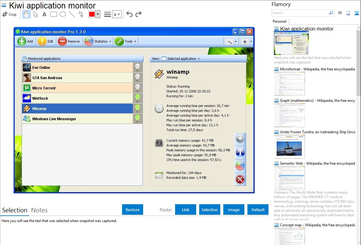 Here is how Kiwi application monitor snapshot can look like. Get Flamory and try this on your computer.