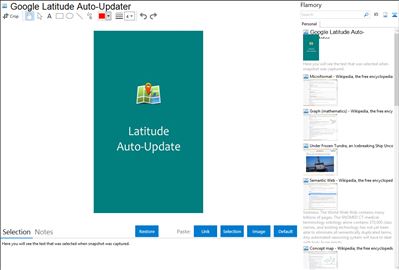 Flamory helps you capture and store screenshots from Google Latitude Auto-Updater by pressing a single hotkey. It will be saved to a history, so you can continue doing your tasks without interruptions. Later, you can edit the screenshot: crop, resize, add labels and highlights. After that, you can paste the screenshot into any other document or e-mail message.