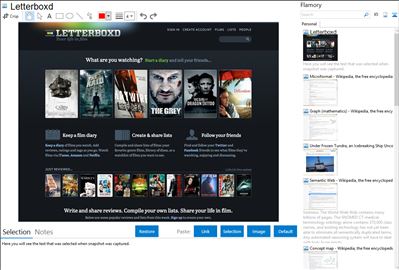 Flamory helps you capture and store screenshots from Letterboxd by pressing a single hotkey. It will be saved to a history, so you can continue doing your tasks without interruptions. Later, you can edit the screenshot: crop, resize, add labels and highlights. After that, you can paste the screenshot into any other document or e-mail message.