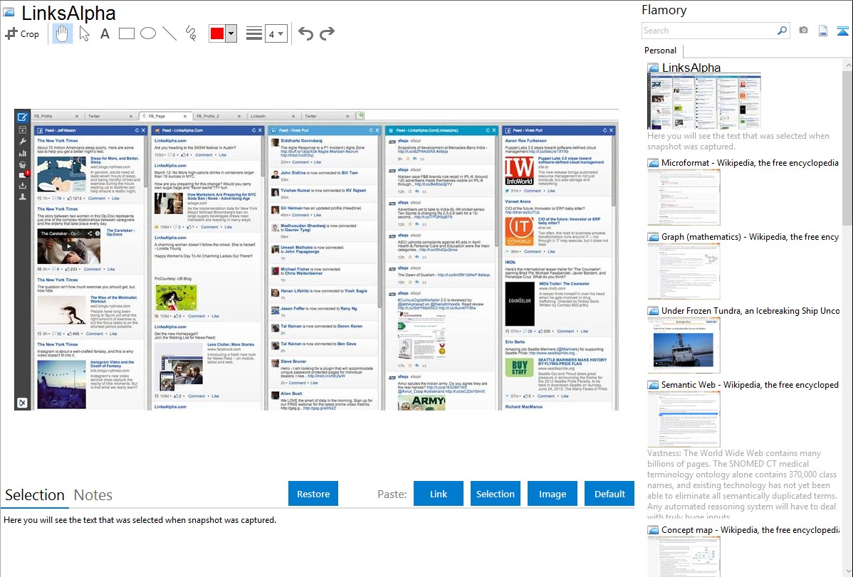 Flamory helps you capture and store screenshots from LinksAlpha by pressing a single hotkey. It will be saved to a history, so you can continue doing your tasks without interruptions. Later, you can edit the screenshot: crop, resize, add labels and highlights. After that, you can paste the screenshot into any other document or e-mail message.