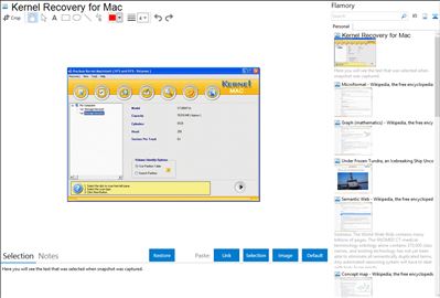 Flamory helps you capture and store screenshots from Kernel Recovery for Mac by pressing a single hotkey. It will be saved to a history, so you can continue doing your tasks without interruptions. Later, you can edit the screenshot: crop, resize, add labels and highlights. After that, you can paste the screenshot into any other document or e-mail message.