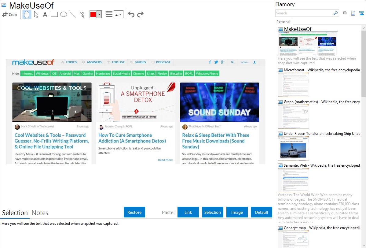 Flamory helps you capture and store screenshots from MakeUseOf by pressing a single hotkey. It will be saved to a history, so you can continue doing your tasks without interruptions. Later, you can edit the screenshot: crop, resize, add labels and highlights. After that, you can paste the screenshot into any other document or e-mail message.