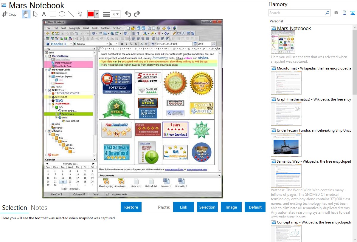 Flamory helps you capture and store screenshots from Mars Notebook by pressing a single hotkey. It will be saved to a history, so you can continue doing your tasks without interruptions. Later, you can edit the screenshot: crop, resize, add labels and highlights. After that, you can paste the screenshot into any other document or e-mail message.