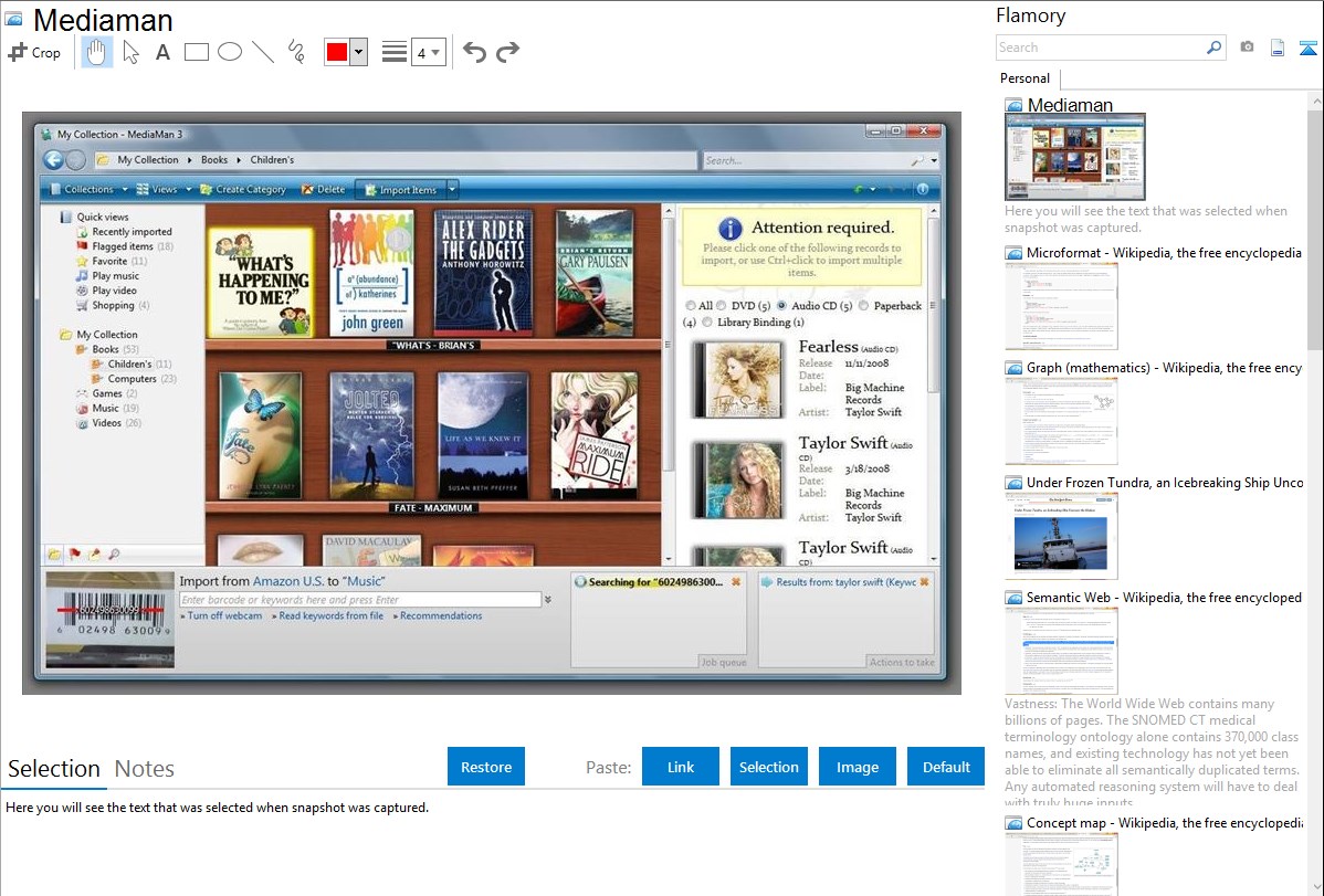 Flamory helps you capture and store screenshots from Mediaman by pressing a single hotkey. It will be saved to a history, so you can continue doing your tasks without interruptions. Later, you can edit the screenshot: crop, resize, add labels and highlights. After that, you can paste the screenshot into any other document or e-mail message.