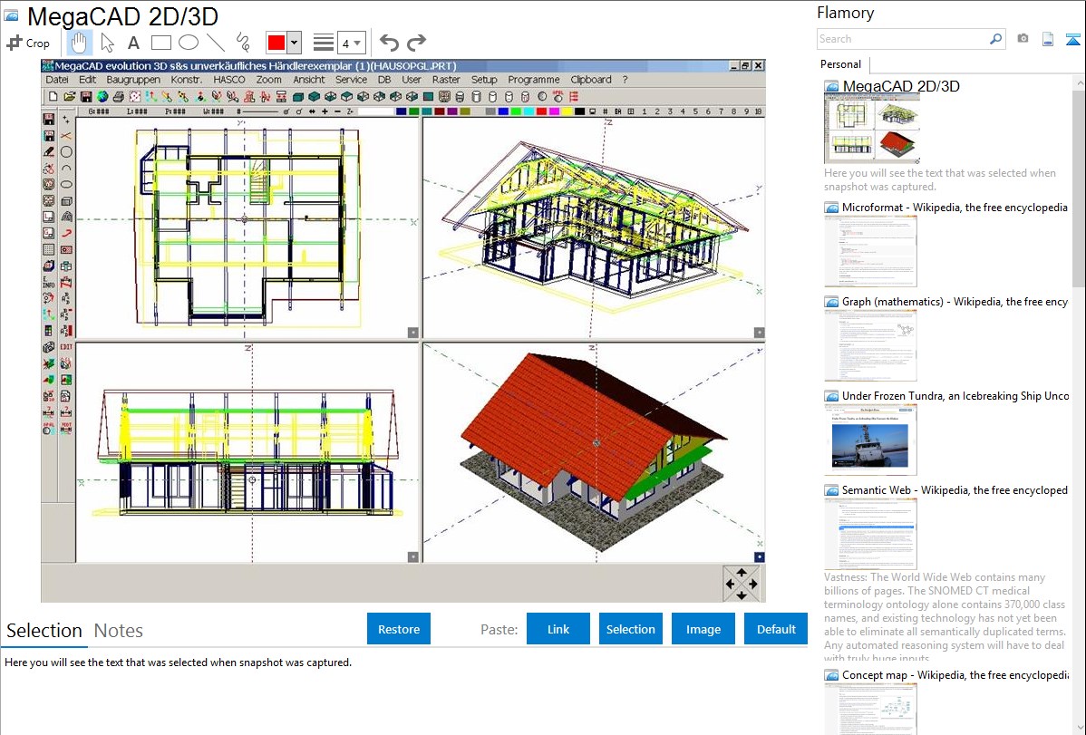 Here is how MegaCAD 2D/3D snapshot can look like. Get Flamory and try this on your computer.