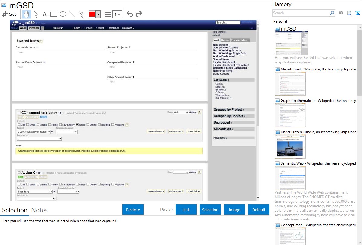 Flamory provides advanced bookmarking for mGSD. It captures screen, selection, text on the page and other context. You can find this bookmark later using search by page content or looking through thumbnail list.