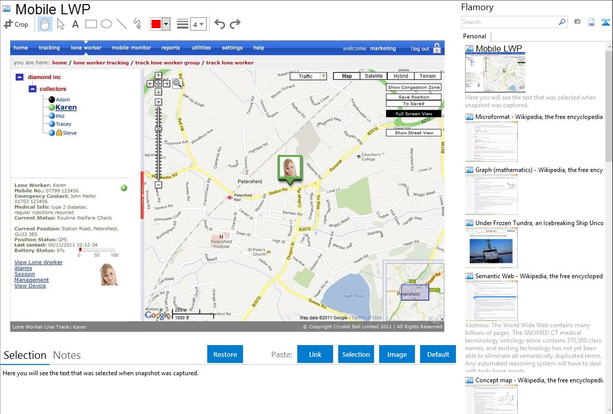 Flamory helps you capture and store screenshots from Mobile LWP by pressing a single hotkey. It will be saved to a history, so you can continue doing your tasks without interruptions. Later, you can edit the screenshot: crop, resize, add labels and highlights. After that, you can paste the screenshot into any other document or e-mail message.