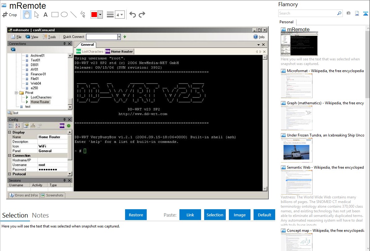 Here is how mRemote snapshot can look like. Get Flamory and try this on your computer.