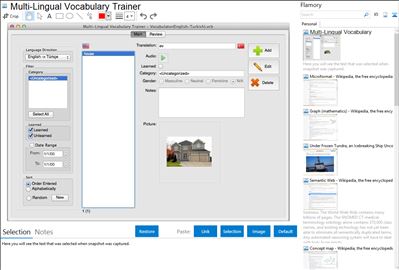 Flamory helps you capture and store screenshots from Multi-Lingual Vocabulary Trainer by pressing a single hotkey. It will be saved to a history, so you can continue doing your tasks without interruptions. Later, you can edit the screenshot: crop, resize, add labels and highlights. After that, you can paste the screenshot into any other document or e-mail message.