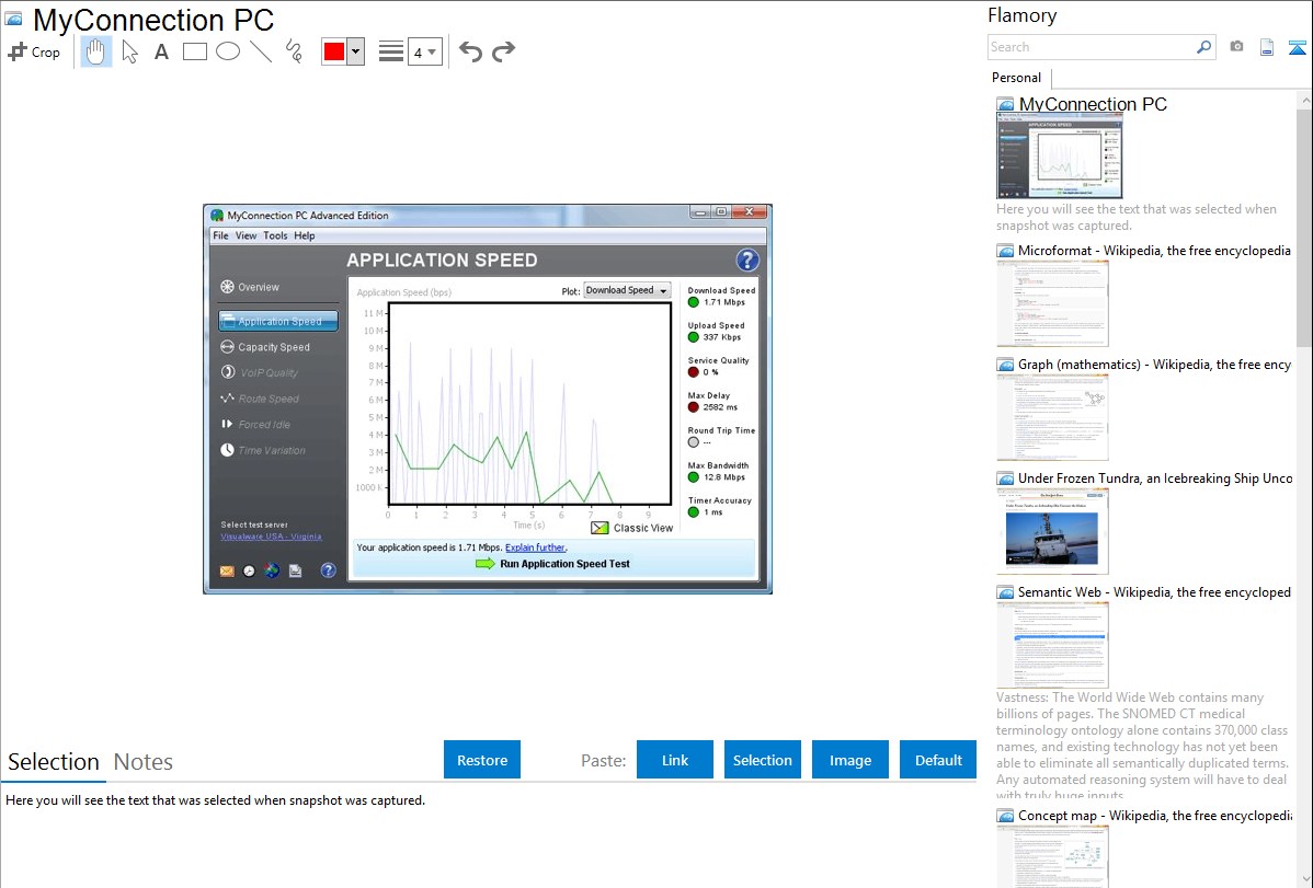 Flamory helps you capture and store screenshots from MyConnection PC by pressing a single hotkey. It will be saved to a history, so you can continue doing your tasks without interruptions. Later, you can edit the screenshot: crop, resize, add labels and highlights. After that, you can paste the screenshot into any other document or e-mail message.