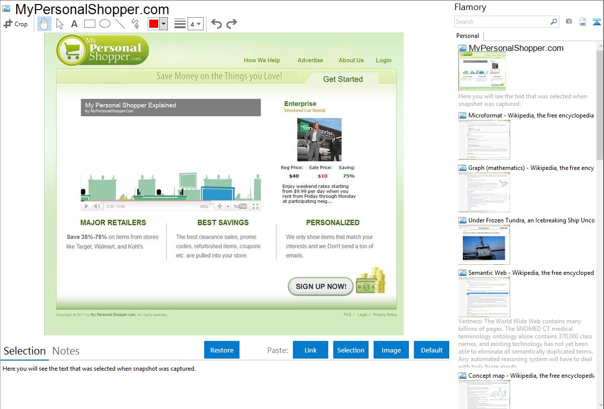 Flamory helps you capture and store screenshots from MyPersonalShopper.com by pressing a single hotkey. It will be saved to a history, so you can continue doing your tasks without interruptions. Later, you can edit the screenshot: crop, resize, add labels and highlights. After that, you can paste the screenshot into any other document or e-mail message.