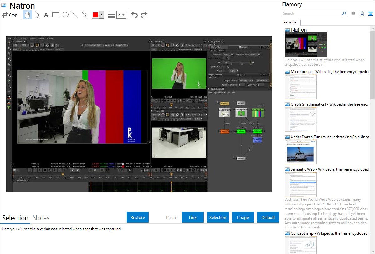Flamory helps you capture and store screenshots from Natron by pressing a single hotkey. It will be saved to a history, so you can continue doing your tasks without interruptions. Later, you can edit the screenshot: crop, resize, add labels and highlights. After that, you can paste the screenshot into any other document or e-mail message.