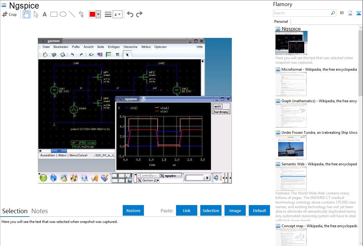 Flamory helps you capture and store screenshots from Ngspice by pressing a single hotkey. It will be saved to a history, so you can continue doing your tasks without interruptions. Later, you can edit the screenshot: crop, resize, add labels and highlights. After that, you can paste the screenshot into any other document or e-mail message.