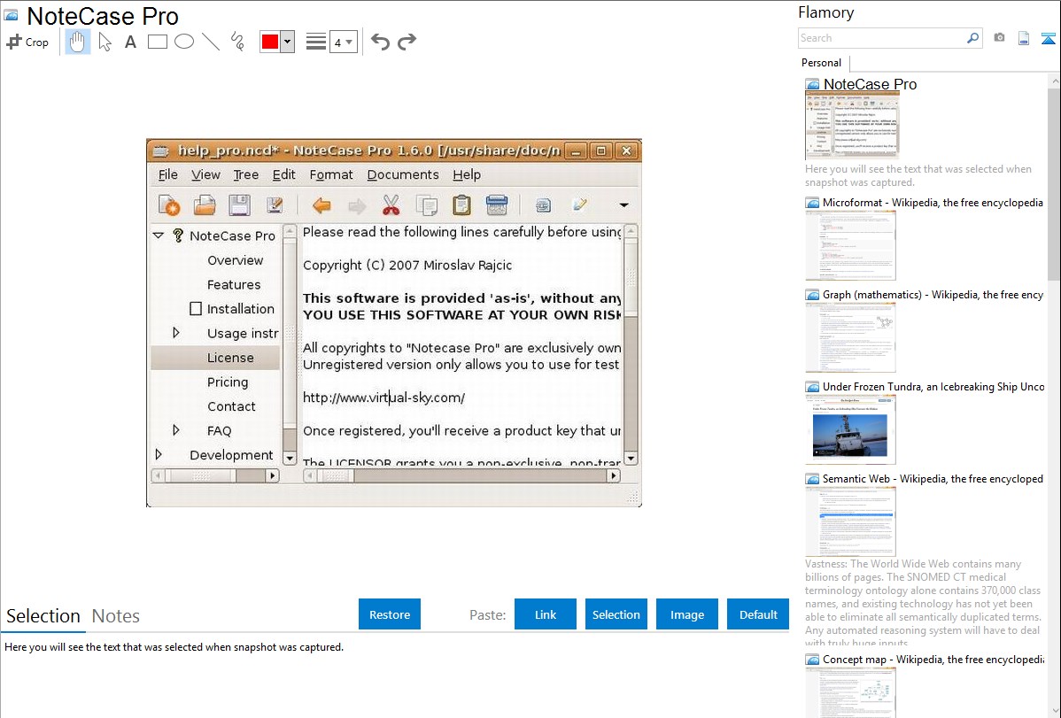 Flamory helps you capture and store screenshots from NoteCase Pro by pressing a single hotkey. It will be saved to a history, so you can continue doing your tasks without interruptions. Later, you can edit the screenshot: crop, resize, add labels and highlights. After that, you can paste the screenshot into any other document or e-mail message.