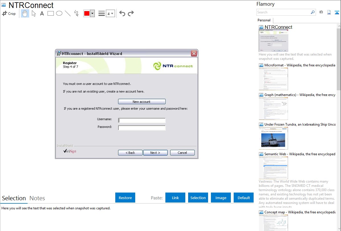 Flamory helps you capture and store screenshots from NTRConnect by pressing a single hotkey. It will be saved to a history, so you can continue doing your tasks without interruptions. Later, you can edit the screenshot: crop, resize, add labels and highlights. After that, you can paste the screenshot into any other document or e-mail message.