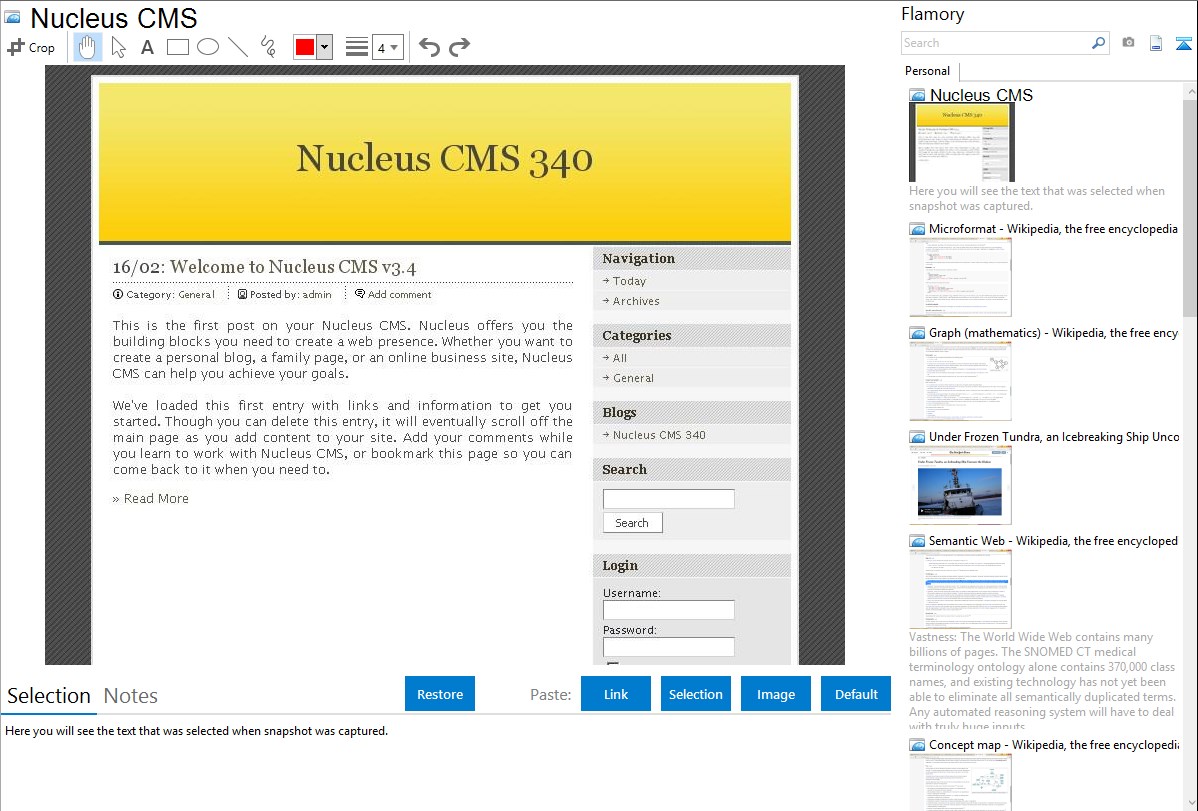 Flamory helps you capture and store screenshots from Nucleus CMS by pressing a single hotkey. It will be saved to a history, so you can continue doing your tasks without interruptions. Later, you can edit the screenshot: crop, resize, add labels and highlights. After that, you can paste the screenshot into any other document or e-mail message.