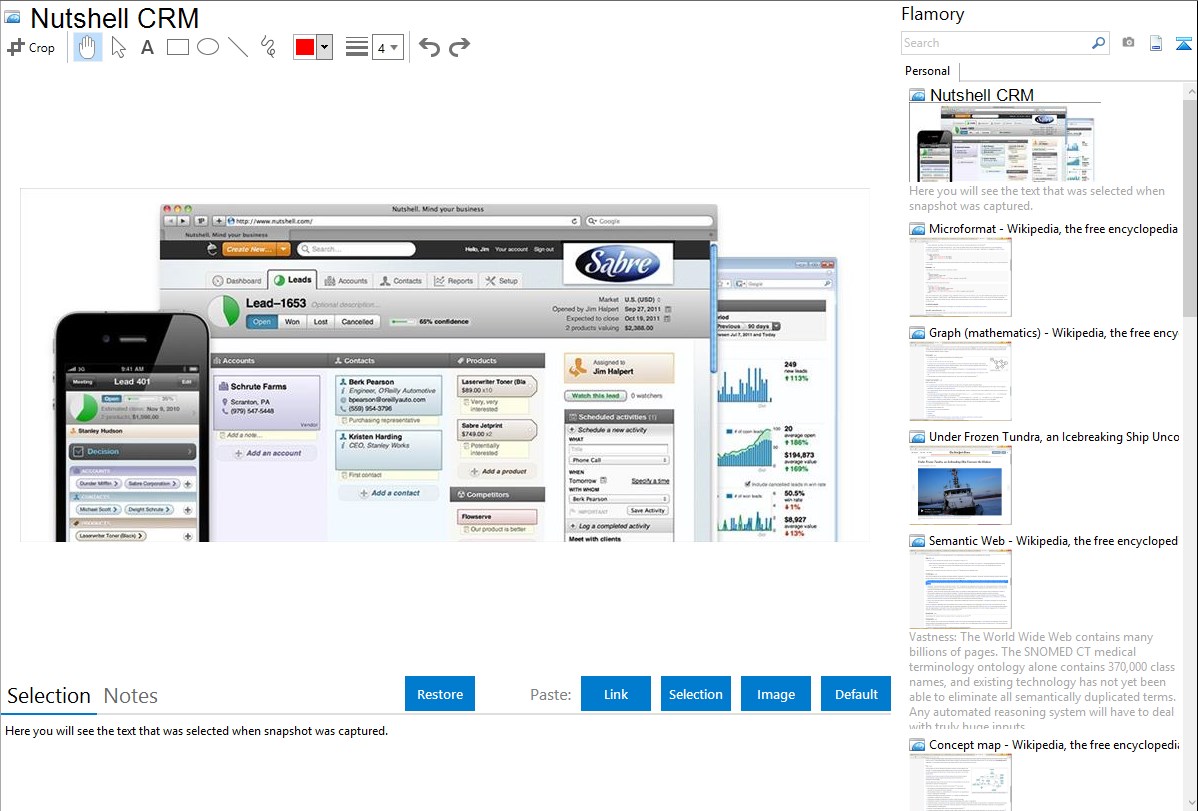 Flamory helps you capture and store screenshots from Nutshell CRM by pressing a single hotkey. It will be saved to a history, so you can continue doing your tasks without interruptions. Later, you can edit the screenshot: crop, resize, add labels and highlights. After that, you can paste the screenshot into any other document or e-mail message.