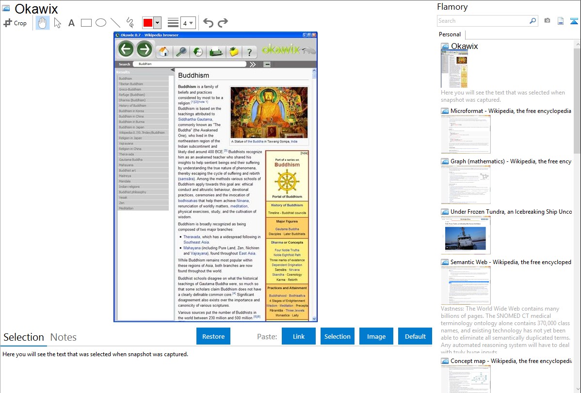 Flamory helps you capture and store screenshots from Okawix by pressing a single hotkey. It will be saved to a history, so you can continue doing your tasks without interruptions. Later, you can edit the screenshot: crop, resize, add labels and highlights. After that, you can paste the screenshot into any other document or e-mail message.