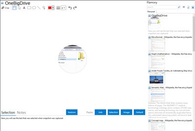 Flamory helps you capture and store screenshots from OneBigDrive by pressing a single hotkey. It will be saved to a history, so you can continue doing your tasks without interruptions. Later, you can edit the screenshot: crop, resize, add labels and highlights. After that, you can paste the screenshot into any other document or e-mail message.