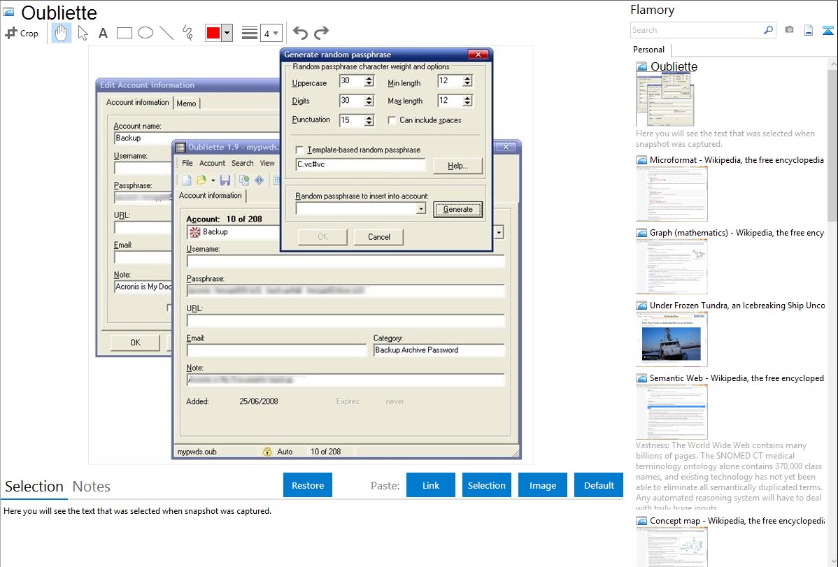 Flamory helps you capture and store screenshots from Oubliette by pressing a single hotkey. It will be saved to a history, so you can continue doing your tasks without interruptions. Later, you can edit the screenshot: crop, resize, add labels and highlights. After that, you can paste the screenshot into any other document or e-mail message.