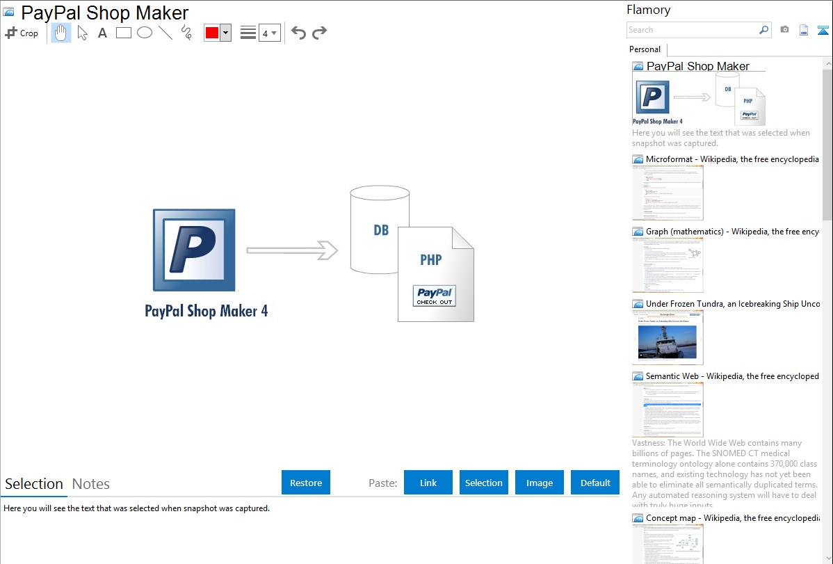 Flamory helps you capture and store screenshots from PayPal Shop Maker by pressing a single hotkey. It will be saved to a history, so you can continue doing your tasks without interruptions. Later, you can edit the screenshot: crop, resize, add labels and highlights. After that, you can paste the screenshot into any other document or e-mail message.