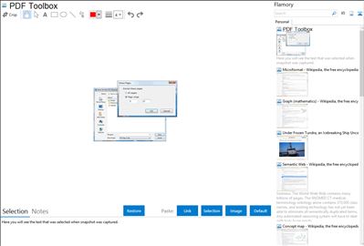 Flamory helps you capture and store screenshots from PDF Toolbox by pressing a single hotkey. It will be saved to a history, so you can continue doing your tasks without interruptions. Later, you can edit the screenshot: crop, resize, add labels and highlights. After that, you can paste the screenshot into any other document or e-mail message.